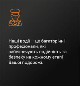 Ми спеціалізуємось лише на індивідуальних перевезеннях по території України та Європи. Тому виконуємо весь маршрут та таймінг поїздки – лише за Вашим бажанням.