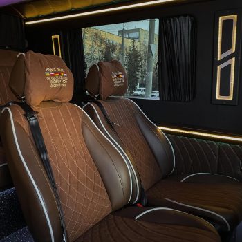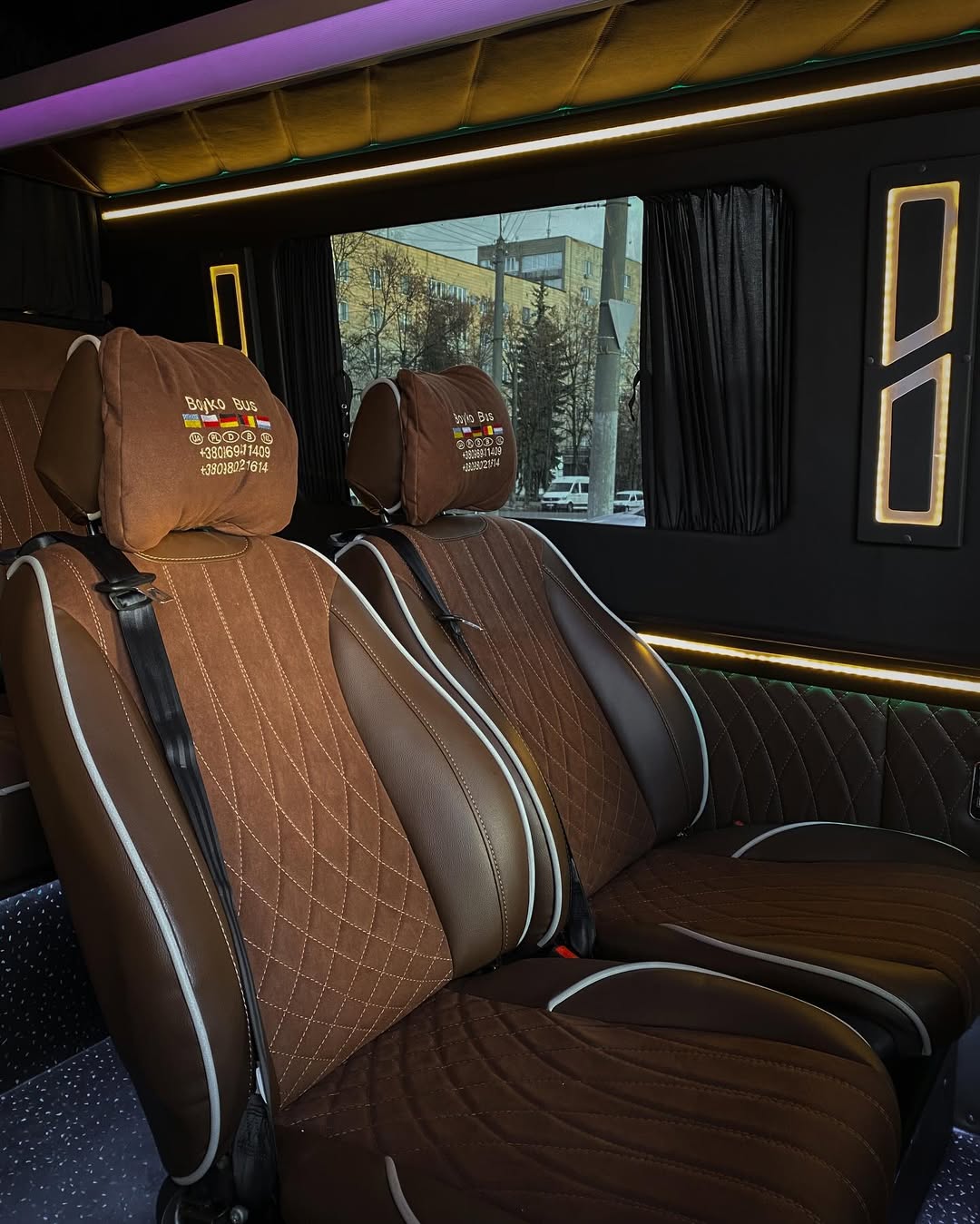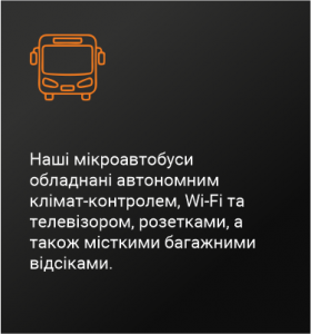 Наша автопарк складається із сучасних мікроавтобусів підвищеної комфортабельності, обладнаних всім необхідним для тривалих подорожей. Залежно від тривалості маршруту для Вашого комфорту на борту автомобіля буде один або два водії.